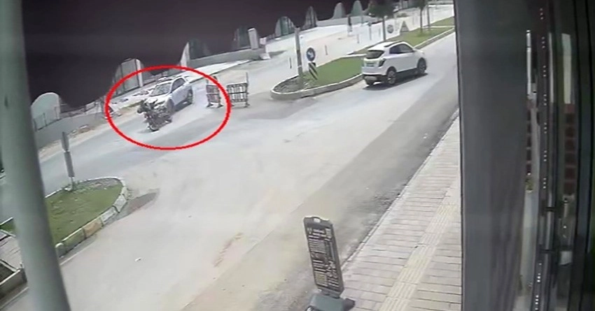 İtfaiye ekiplerince yaralı olarak araç altından çıkartılan motosikletli, yaralı olarak hastaneye kaldırılırken, kaza anı güvenlik kamerasına yansıdı.