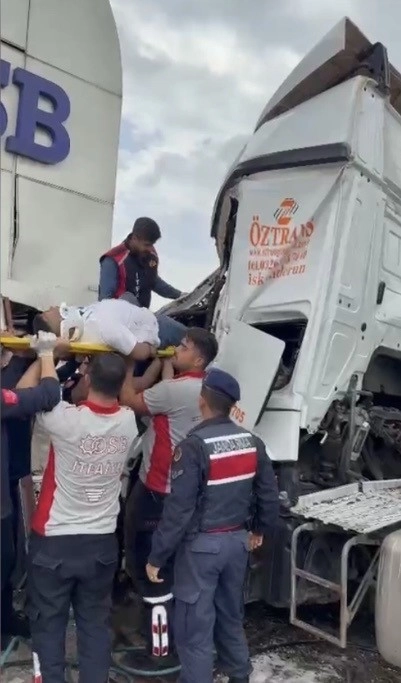 Araç içerisinde sıkışan sürücü, itfaiye ekiplerinin müdahalesiyle kurtarıldı.