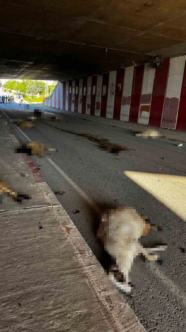 Hatay’da kara yoluna çıkan küçükbaş hayvan sürüsünün içine otomobil daldı, kazada 17 koyun telef oldu.