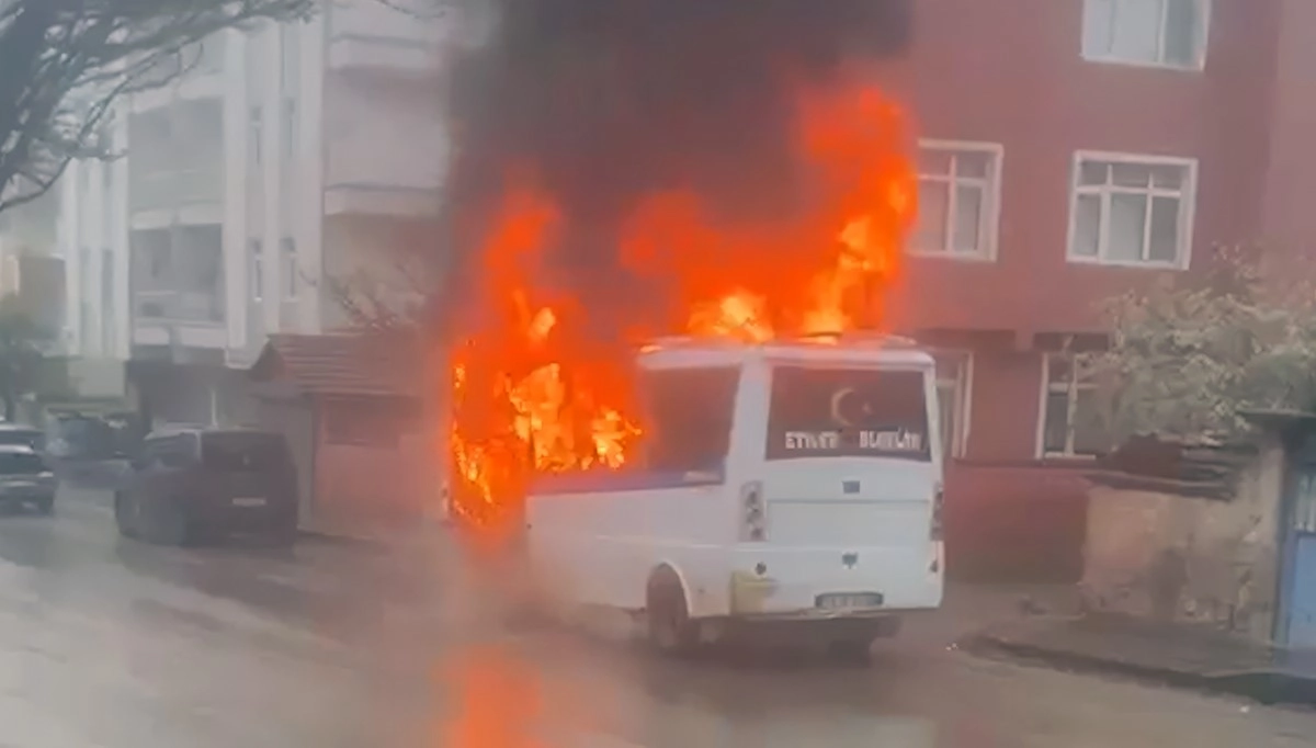 Olay, sabah saatlerinde Karacalı Caddesi’nde meydana geldi. Edinilen bilgiye göre, M.Ö.’ye ait 71 M 0119 plakalı BMC marka minibüste park halindeyken henüz bilinmeyen bir sebeple yangın çıktı. Kısa sürede büyüyen alevler, aracı sardı.