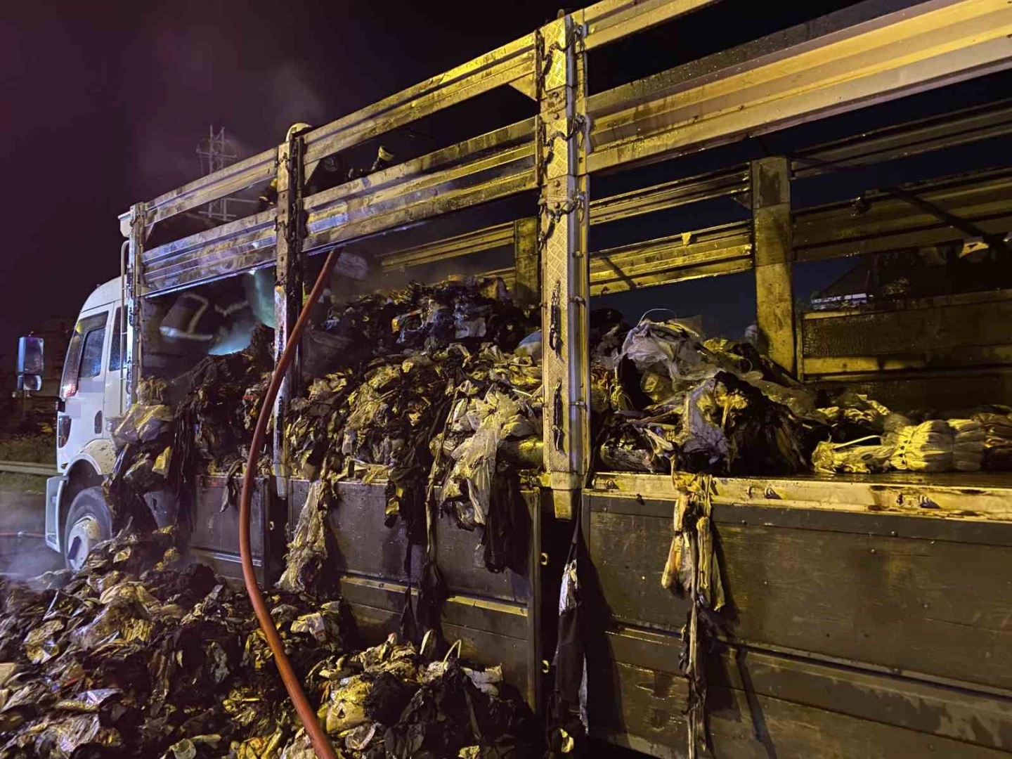 Olay, TEM Otoyolu Derince Yenikent mevkiinde meydana geldi. İstanbul’dan Kocaeli istikametine tekstil ürünü taşıyan kamyonun sürücüsü, seyir halindeyken aracın arka kısmından dumanlar yükseldiğini fark etti. Durumu kontrol etmek isteyen sürücü, aracı yol kenarında bir köprü altındaki müsait alana çekti. Kısa sürede büyüyen alevler kamyonun dorsesindeki tüm yükü sardı. Sürücünün ihbarı üzerine olay yerine itfaiye, sağlık ve otoyol jandarma ekipleri sevk edildi. İtfaiye ekipleri, yoğun trafik nedeniyle bölgeye ters istikametten kontrollü şekilde ulaşarak alevlere müdahale etti. Ekiplerin çalışmaları sonucunda yangın kontrol altına alınarak söndürüldü. Yangın sonrası kamyonun dorsesinde bulunan tekstil ürünlerinin tamamı yanarak kül oldu. İtfaiye ekipleri, yeniden alevlenme riskine karşı uzun süre soğutma çalışması gerçekleştirdi. Yanan malzemeler dorseden boşaltılırken, Karayolları ekipleri de yolda temizlik çalışması yaparak trafik güvenliğini sağladı.