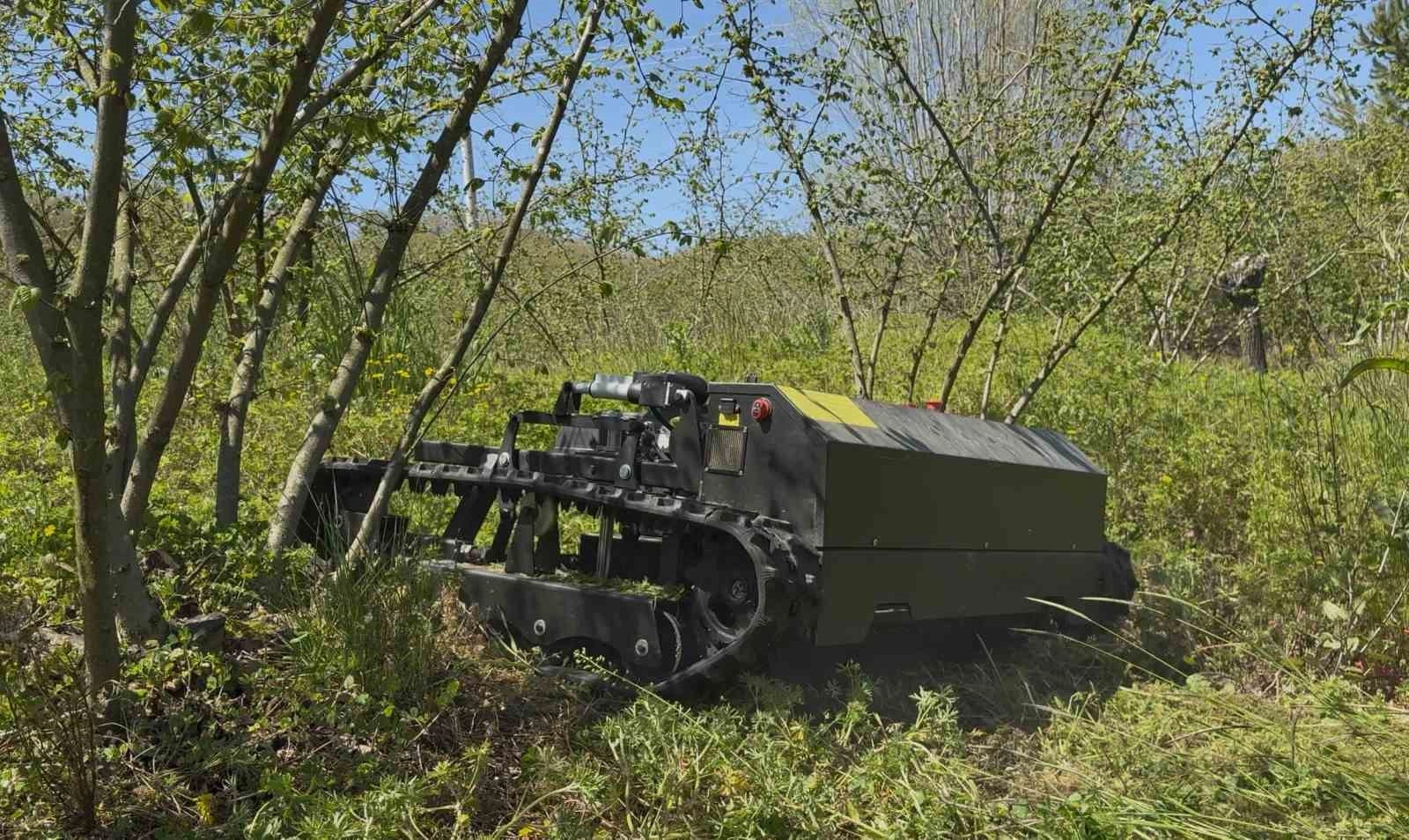 Sakarya’nın Kaynarca ilçesinde makine mühendisliği mezunu genç, fındık bahçelerindeki yabani ot mücadelesini kolaylaştırmak gayesiyle uzaktan kumandalı insansız ot biçme robotu ithal etti